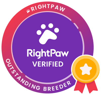We implement the MISTY METHOD to toilet train our puppies from as early as two weeks of age. This ensures that when the puppy joins its new owners, the ingrained habit of using a designated toilet area facilitates a seamless transition.