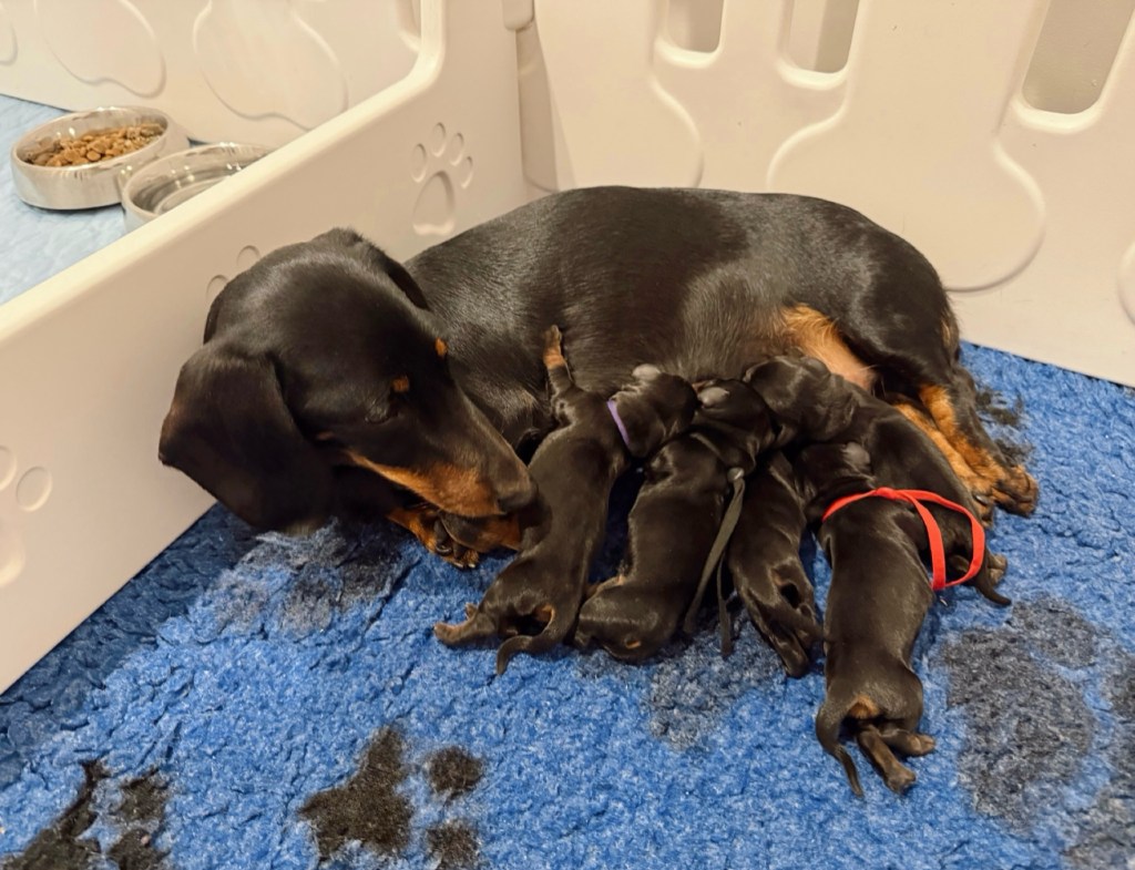 Our darling MEINRAD SNUGGLEPOT WEINER (AKA Mimi) has welcomed a beautiful bundle of tiny paws and sleepy squeaks! Mama is doing so well, and we’re cherishing every precious moment.