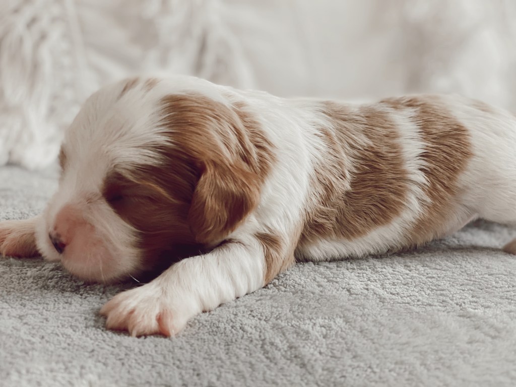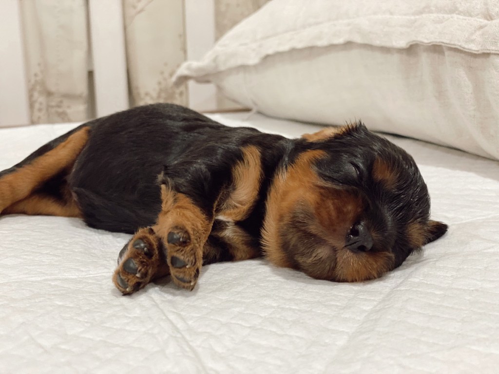 Exciting news! The puppies are now fully toilet trained at 4 weeks. They have been walking over to their grass area to poop for almost 2 weeks now. So when they come home to you, and you are out for too long, they can have a grass mat in their puppy run area. Otherwise, When the puppy isn’t sleeping; we advise that you take the puppy out to the garden every hour until the puppy can hold himself for longer stretches of time.